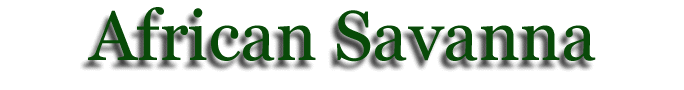 The African Savanna biome is a tropical grassland in Africa between latitude 15° North and 30 degrees S and longitude 15 degrees W and 40° West. It covers Guinea, Sierra Leone, Liberia, Cote D'ivore, Ghana, Togo, Benin, Nigeria, Cameroon, Central African Republic, Chad, Sudan, Ethiopia, Somalia, and the Democratic Republic of the Congo, Angola, Uganda, Rwanda, Burundi, Kenya, Tanzania, Malawi, Zambia, Zimbabwe, Mozambique, Botswana, and South Africa. Annual rainfall in the African Savanna is about the same as that of Wisconsin. During the rainy season, beginning in May and ending in November, they get fifteen to twenty-five inches of rain a month. In the dry season they only get about four inches of rain. The dry season occurs more then seven months of the year, from October to March in the southern hemisphere and April to September in the northern hemisphere. The dry season comes in the low sun period and the wet season comes in the high sun period. They have a wet-dry tropical climate. A rolling grassland dotted with trees is one way to define the African Savanna. The African Savanna is a thornbush savanna, which has many different kinds of plants such as acacia Senegal, candelabra tree, jackalberry tree, umbrella thorn acacia, whistling thorn, Bermuda grass, baobabs, and elephant grass. The Serengeti Plains are a grass savanna that has very dry but nutrient-rich volcanic sand. Around 2 million large plant-eating mammals live in the savanna. There are 45 species of mammals, almost 500 species of birds, and 55 species of acacia in the Serengeti Plains. There are animals such as lions, African wildcats, klipspringer, steenbok, Burchell's zebra, African Savanna monitor, and puff adders. They have the largest diversity of hoofed animals in the world including antelopes, wildebeest, buffalos, zebras, and rhinoceros. Both plants and animals have adapted very well to living where they live. Some animals are grazers, some are browsers, and some do a little of both. One herd of browsers nibbles at the trunk of a tree, another looks a little higher for food, a third eats even higher than the ones below them, and another herd browses at the very top. Many plants have developed long taproots to reach down to water. Some kinds of trees have thick fire resistant bark and trunks that can store water. Some animals migrate when it gets too hot or too cold for them, and others burrow in the ground. Some animals have tough cheek teeth so they can stand their diets, many animals cannot eat tough grasses like the animals of the African Savanna. Some animals have developed speed for hunting such as cheetahs others such as giraffes have developed long legs to become too high for a cheetah or other predators to get to. Naked mole rats feed on large underground tubers produced by plants, the secretary bird feeds on snakes so it has evolved to have long legs to walk through the grasses, and ostriches can run as fast as 31 miles per hour to escape predators. They can also have very thick skin to make it so predators cannot bite through their skin. This biome has been helped, hurt, and changed by humans in many ways. For example people use the land for cattle grazing, which kills the grass and turns the savanna into a desert, they cause many fires that destroy the land, use of wood for fuel also causes problems to the environment, and people also poach (hunt the animals illegally) very often causing animals to become extinct. To repair damage people are creating controlled burning programs to keep worse fires from developing, they are creating nature preserves to keep the savanna natural, and they set up a biosphere reserve in South Africa to help protect the environment. The Serengeti and the Ngorongoro Conservation Area together have been named a World Heritage site. The Serengeti is one of the most famous national parks in the world. It has the most grazing animals and their predators in Africa. Some of the greatest wildlife scenes ever seen take place there. The African Savanna takes up almost half of the continent, about 5 million square miles. If it weren't for the efforts that people made to preserve the savanna they may not have all the animals, plants, and other wonderful things they have now. by Maya S. 2003
