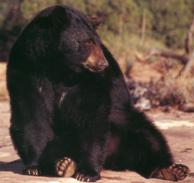 plants it eats. The black bear lives in the deciduous forests of eastern North America, and the pine forests of Canada. They don't live in the central areas of North America. There are about 400,000 and 750,000 black bears in North America. Females reach sexual maturity in four to five years, and the male reaches sexual maturity in five to six years. The Black Bear mates during the summer. This is the only time that the black bears come together. The cubs are born in the winter during hibernation. They are born blind and helpless. They develop quickly and are ready to follow their mom within five weeks after her long hibernation. The cubs stay with their mom for one year, and after their second hibernation with her, they leave. The cubs sometimes stay with each other for a while after they are on their own. To get ready for hibernation the black bear can eat as much as 30 pounds of food per week. Most black bears hibernate between four and seven months. This lets them save energy during the cold winter months. During hibernation the black bear loses a lot of weight. Males can lose 15% to 30% of their weight. Females can lose almost half their body weight. In the wild the black bear can survive up to twenty-five years, and sometimes longer. The powerful build of the black bear allows them to go where they want to in the thick forest. Their fur is very thick. It keeps them warm during the long winter months. It also protects them from the undergrowth of the forest. The claws of the black bear are very long, sharp and curved. The claws are sometimes used to climb trees in times of danger. The male bear can be dangerous because it can kill the cubs so it can breed with their mother. Other predators of the black bear cubs are mountain lions, wolves, bobcats, eagles, and packs of dogs who will kill the cubs if they become separated from their mother. During hibernation the black bear will not urinate or defecate. It recycles its waste to use all the proteins. The black bear is an omnivore. It eats both animals and plants. In the spring it eats grasses, flowers, sedges and herbs. In the summer it eats berries, tubers, roots, fruits. In the fall it eats nuts and acorns. They will also eat fish, ants, other insects, and honey. Sometimes they eat elk and moose calves. They will also eat ground squirrels and marmots. The black bear will also eat any dead animal it comes across. Black bears prefer to eat in the cool of the evening or early morning. During the hot days. Bears will try to find shade to keep them cool. The black bear is a predator but the cubs are prey to some animals. The black bear is a scavenger, and helps the environment by eating dead animals. The American Black bear is not yet an endangered species, but is listed as a threatened species with similarity of appearance to a threatened species. For example, the Asian black bear, which looks a lot like the American black bear, is hunted for its gallbladder. The American black bear is listed as a look alike species to protect it from extinction. It is still doing well in most of its ranges. June V. 2001