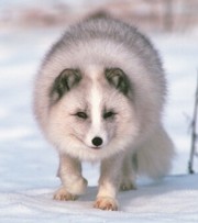 behind. Both male and female mature sexually at one year of age. The mating season is May-February and the gestation period for a pregnant female is 52 days. The number of pups born can range between 6-19, and the newborns weigh approximately 2 ounces. Whelps are helpless and blind when first born. They nurse until they can eat solid food. Both parents care for the pups. The mother raises the young while the father hunts for lemmings and other food. They start to eat solids after 6 weeks and leave the den after 14-15 weeks. The whelp is usually dependent on its parent from summer to fall. Mortality rates for young foxes is very high. An average life span for the arctic fox is around three years. The Arctic fox is a solitary animal. Arctic foxes usually live to 15 years of age. It is an omnivore (one who eats both plants and animals). A typical diet of this fox consists of birds, eggs, small mammals and fish. It will also eat berries, seaweed, insects and larvae, when other prey is scarce. The Arctic fox is a predator to lemmings (one of it's favorite foods) and voles, among other creatures. The population cycles of lemmings and voles are largely dependent on the arctic fox. The fox is prey to wolves, polar bears and golden eagles. Because it is a scavenger, it keeps the environment clean by eating dead animals and keeping the rodent population down. The Arctic fox is a diurnal creature. The Arctic fox has adapted to its environment by growing long fur that changes color with the season for camouflage. It tends to eat whatever is available. It s movements are stealthy due to lack of cover on the tundra. Its legs, ears, and muzzle are short to conserve heat, and uses its tail like a muffler when cold. The Arctic fox is not endangered world wide and it is estimated that there are several thousand arctic foxes left in the wild. Two arctic fox populations are endangered, however. One in Russia has been reduced to around 90 animals because of a mange caused by ear ticks introduced by dogs. The second in Fennoscandia (Norway, Sweden, Finland, and Kola Peninsula) was caused by over hunting around the turn of the century. The total number of breeding pairs there is about 140. By Tye S. 2003