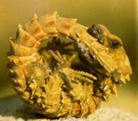 for cover. The Armadillo Lizard has its babies in the late summer. Only 1 or 2 babies are born during that time. The Armadillo Lizards stay in family groups, and they will all live in the same rock crevice. When the lizards give birth, the babies are live-born, but do have a thin membranous shell that they need to break through. The Armadillo Lizard is a prey animal. It is preyed upon by bigger and stronger predators, such as humans, etc. The Armadillo Lizard's armor is most usefull against many birds, mammals, and other reptiles. The Armadillo Lizard is not an endangered species although it does have a lot of enemies to protect itself from. The Cape Provincial Ordinance helps the Armadillo Lizards when their injured or sick. That way the Armadillo lizards can be less endangered. Zach S. 2001