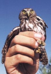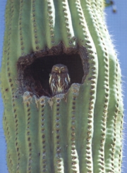 bibliography: Photo of pygmy owl in saguaro courtesy of the Arizona Game and Fish Department. Photo of pygmy owl in hand by Michael Terrio. "Cactus Ferruginous