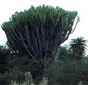 The candelabra tree is sometimes used as a living fence probably because it has sharp spines on its branches, and touching it burns. by Nirvana H. 2000