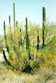 enough water the desert The wood of the desert ironwood is very hard and dense. It actually sinks in water. It was used by the Seri Native Americans of Mexico for tool handles. Today the Seri Indians make carvings of desert plants and animals from the ironwood. Dead wood is gathered from the desert floor, and the carvings are made with hand tools. Tradition has it that carvings made from the desert ironwood bring good fortune and long life. The carvings are in much demand, especially large carvings, and bring in a lot of money. Illegal harvesting of ironwood is on the rise and live trees are being cut down. Desert ironwood burns very hot and is used to make charcoal. Woodcutting causes an average of 17% reduction in ironwood. Wood has been illegally cut even in the Organ Pipe Cactus National Monument and other protected areas. Desert ironwood trees grow only in the Sonoran desert. Urban developments are threatening their habitat. Many of Tucson, Arizona's housing developments are expanding into the ironwood forests. The destruction of the forests means the destruction of the special ecosystem the ironwoods create. The already endangered cactus pygmy owl, which depends on the ironwoods for it prey, would be in greater danger of extinction. The threatened desert bighorns and Sonoran pronghorn antelopes depend on it for forage. It would mean the disappearance of the saguaro and the pipe organ cacti which need the shade of the ironwoods when they are young. Although it doesn't look like a very important tree, in the desert the ironwood tree enables life to flourish. Without it, that life would disappear. 2002