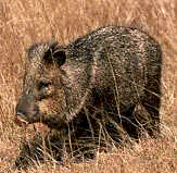 The javelina eats cacti, grass, bulbs, berries, flowers, mushrooms, and fruit, which is easy for them to get in their habitat. The javelina always travel and live in groups. The female gives birth to twins about once a year. Her young travel with the group their whole life until they die. No new members are ever accepted into the group unless they are born into it. The javelinas have a very good nose. That can have its advantages if there is a predator around. They also look for food in groups so if they're attacked they can fight back in numbers. The javelina's niche is the water holes and bushes in the canyon area where they live. They get shade under the bushes, so they won't over heat. They can't survive long without water, so it's good to have water close by if you are a javelina. Javelinas' status in the wild is very good right now. There lots of them around and they're not dying off or going extinct. by Tristan A. 2000.
