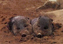 Javelinas in a sand bath