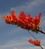 The Ocotillo is pollinates by hummingbirds that like the honey nectar it produces. They feed on the flowers during their travel north from Mexico to the mountains of the Western US. The Ocotillo is very plentiful and not endangered because it's the only Fonquieria to be cultivated. The plant is easily grown from seed and cuttings and sold as nursery stock. The shrub is often use as "fencing" because its spines stop people and animals from passing through. The Ocotillo can be planted at anytime of the year. The Ocotillo is a desert success story. It is a plant that has adapted to its environment, and it is useful to both animals and mankind. by Kaitlin K. 2003