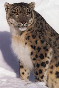 leopard The male snow leopard marks its territory of 4 to 40 square miles with several females inside .The snow leopard is a solitary animal. It mates from January to April. They have 2-3 young in a litter. During birth, the male brings food to the female. After birth, the male leaves the female. The babies are born blind and deaf and they cannot walk. At about three months, they follow their mother on a hunting trip. About two years later they leave their mother. They stay together for a short time and then they go their separate ways. They have babies every two years. The average snow leopard lives up to 20 years. The snow leopard's coat allows it to blend in with the rocks. The thick fur on the soles of its feet insulate the paws against the snow in the winter. The enlarged nasal cavities help it to breathe in high altitudes. The snow leopard eats wild sheep, wild boars, gazelles, hares, markhor, bobak, tahr, marmots, mice and deer. The snow leopard is a carnivore, which means that it eats meat. The snow leopard can eat an animal three times the size of itself. The male eats the prey it kills; if he sees his family, he will back off and leave as they eat. The snow leopard will drag the carcass of a large animal to its marked territory and eat it over several days. The snow leopard is a predator. The snow leopard limits the population of animals so they are not over populated. The snow leopard is endangered. There are only 4,000 to 7,000 left in the world. Hunting and the decline of its prey threaten the snow leopard's existence. There are 47 parks all over the world, which serve to protect them. by Anthony C. 2001