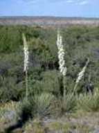 be found growing in The Soaptree Yucca is a tall 10-18 foot plant with palm treelike leaves. These leaves are at the base of the plant. They are very similar to those of a palm tree in the respect that the green leaves of the Soaptree Yucca are long and triangular shaped and are not wide. The stalk that shoots up from the leaves is a twig-thin stalk with small white flowers growing at the top. The plant's fruit is also on the stalk and is a brown capsule until the summer, when it splits into three sections that contain black seeds. Maybe you are wondering why the plant is call the "Soaptree" Yucca. There is a logical reason. Inside the roots and trunk of the plant is a soapy substance. This substance was commonly used as a substitute for soap. In a drought, ranchers use the plant as an emergency food supply for their cattle. In the days when Native Americans dwelled in the deserts, the fiber of the Soaptree Yucca's leaves were used to weave baskets. This plant gave them a head start to finding enough food, because the Native Americans most likely used the baskets to collect food. The Yucca is also used for decoration in many American gardens. So this plant's leaves, roots, trunk and stalk have been useful to humans since the time of the Native Americans. The Yucca is a very climate compatible plant because if you look hard you can find it almost anywhere. by Simone Mc. 2000.